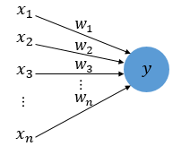 퍼셉트론 알고리즘의 구조는 크게 입력, 가중치, 출력으로 나뉘어져 있습니다. 다음 사진은 n개의 입력을 받은 퍼셉트론의 예 입니다.