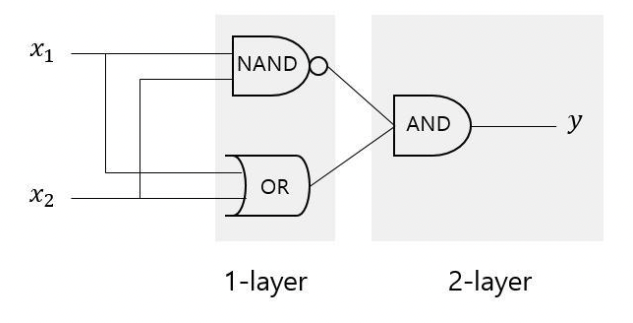 XOR게이트는 다층 퍼셉트론으로 구현할 수 있는 (AND, OR, NAND) 게이트를 조합하여 구현할 수 있습니다.