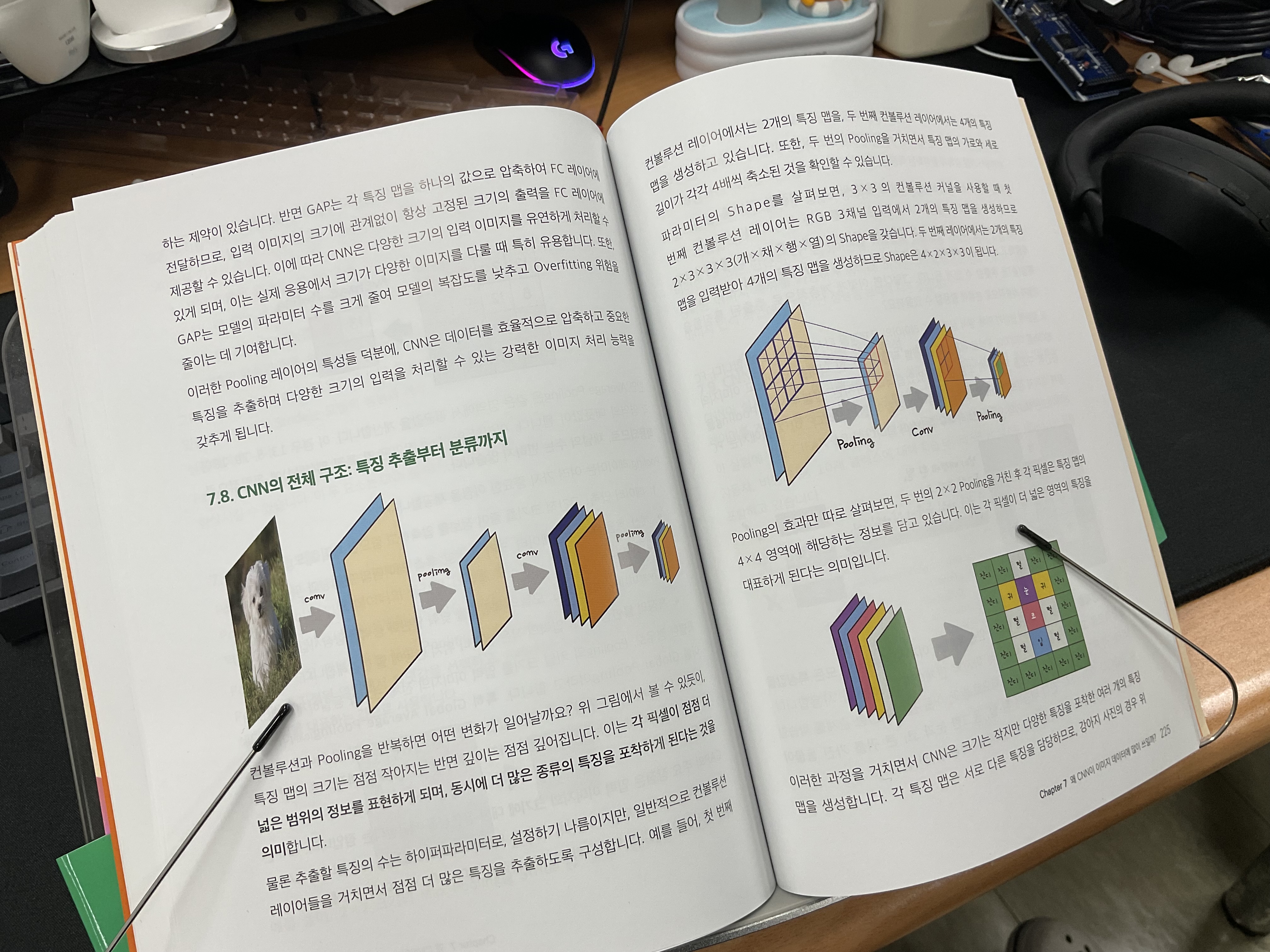 왜 CNN이 이미지 데이터에 많이 쓰이는지, CNN 구조가 어떻게 이루어져있는지, CNN의 특징 맵 실험 결과 분석 등을 많은 부분을 책에서 다루고 있으니 읽어보시면 좋을 것 같습니다.