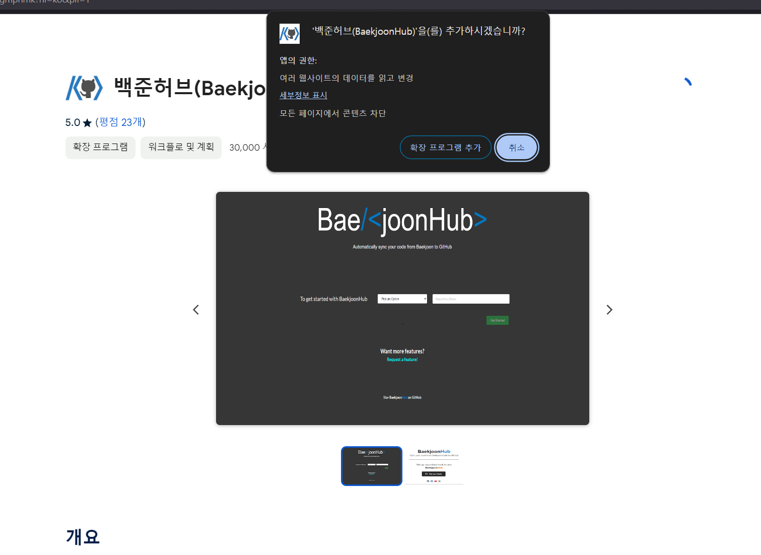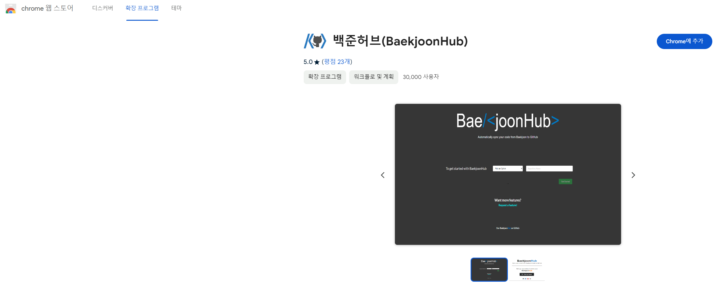 백준허브(BaekjoonHub) - Chrome 웹 스토어